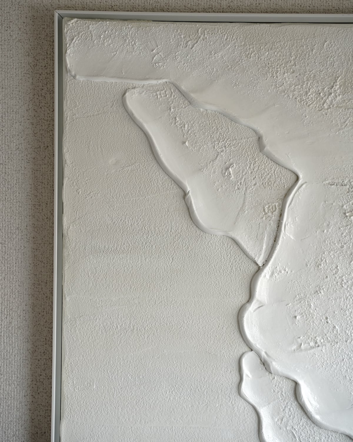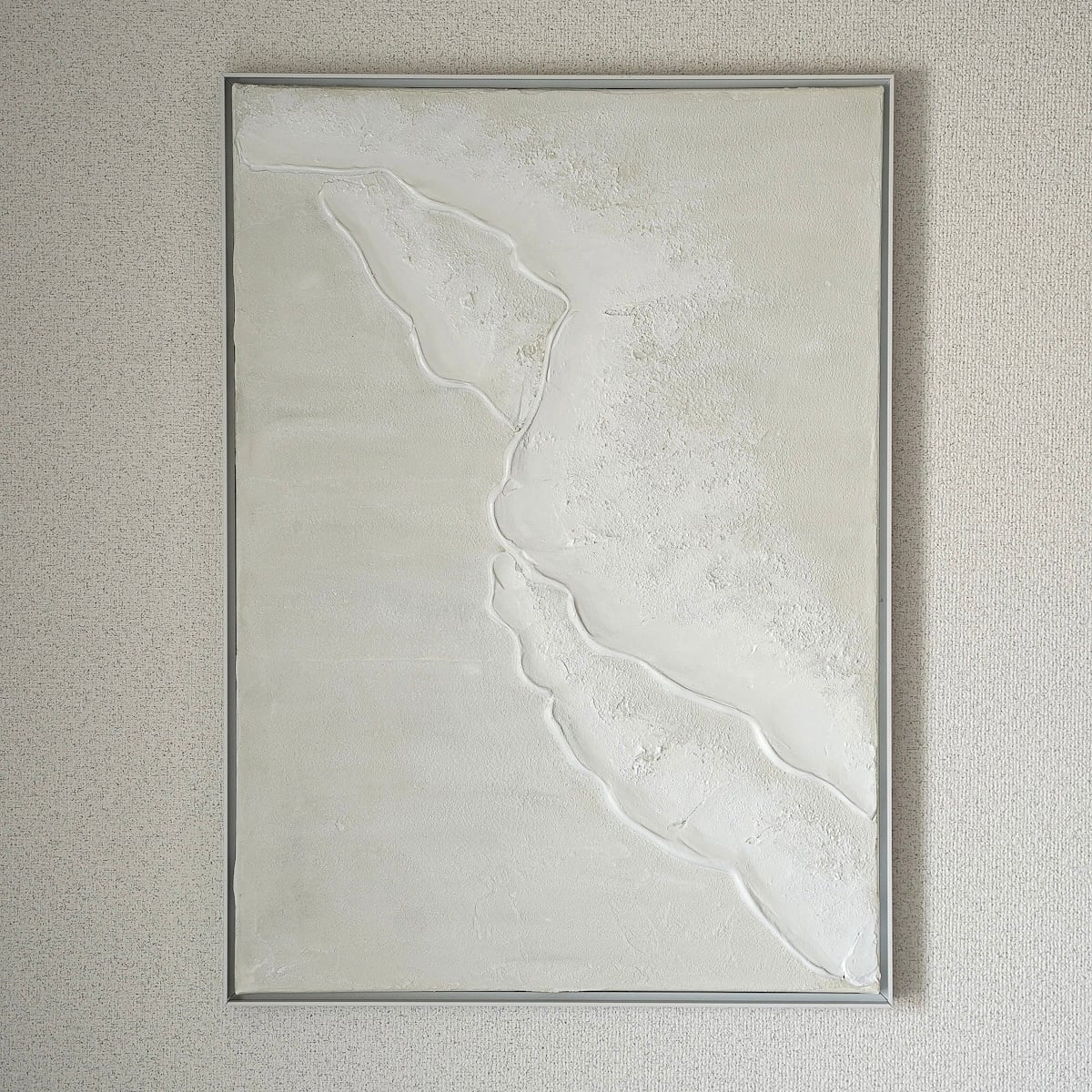 縦長の絵 海の絵 ベージュの絵 グレージュ ベージュインテリア 淡い民 波の絵 モダンアート 北欧インテリア キャンバスアート インテリア テクスチャーアート ホワイトテクスチャーアート アートパネル モダンアートミニマルアート 白い部屋 白いインテリア アートギャラリー 白い絵 額装 ミクストメディア