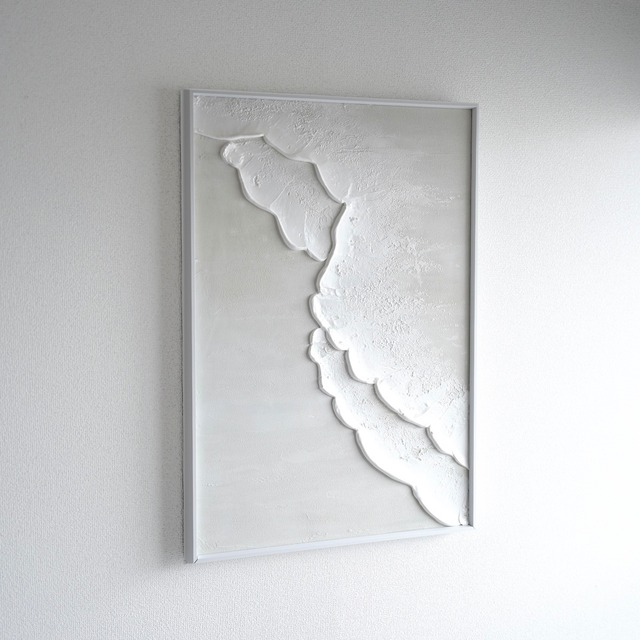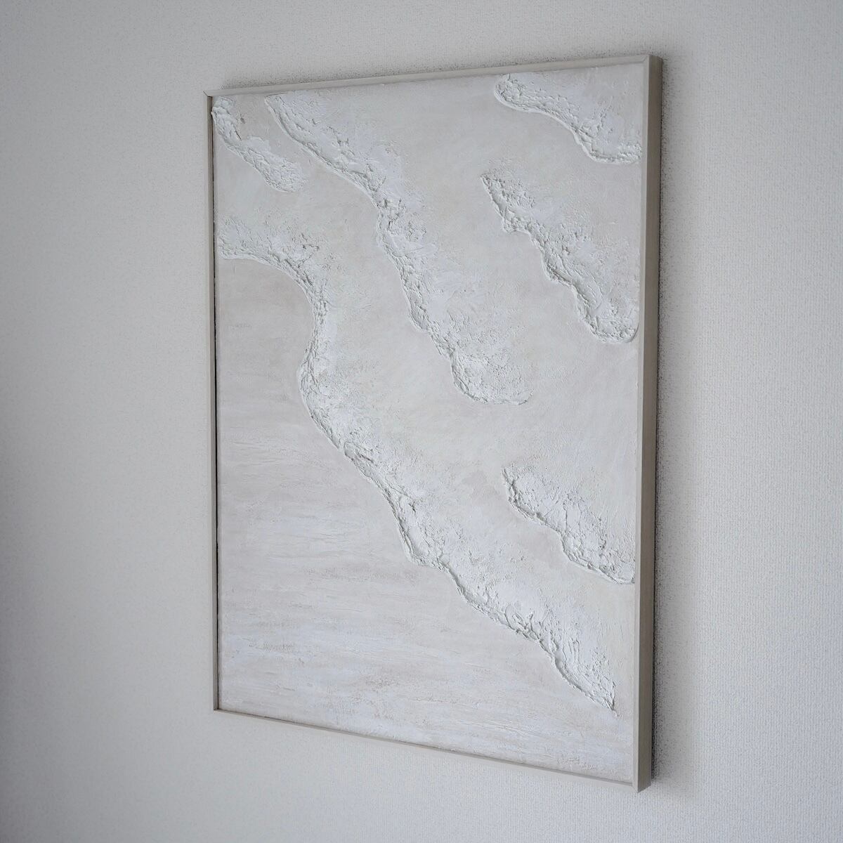 縦長の絵 海の絵 ベージュの絵 グレージュ ベージュインテリア 淡い民 波の絵 モダンアート 北欧インテリア キャンバスアート インテリア テクスチャーアート ホワイトテクスチャーアート アートパネル モダンアートミニマルアート 白い部屋 白いインテリア アートギャラリー 白い絵 額装 ミクストメディア