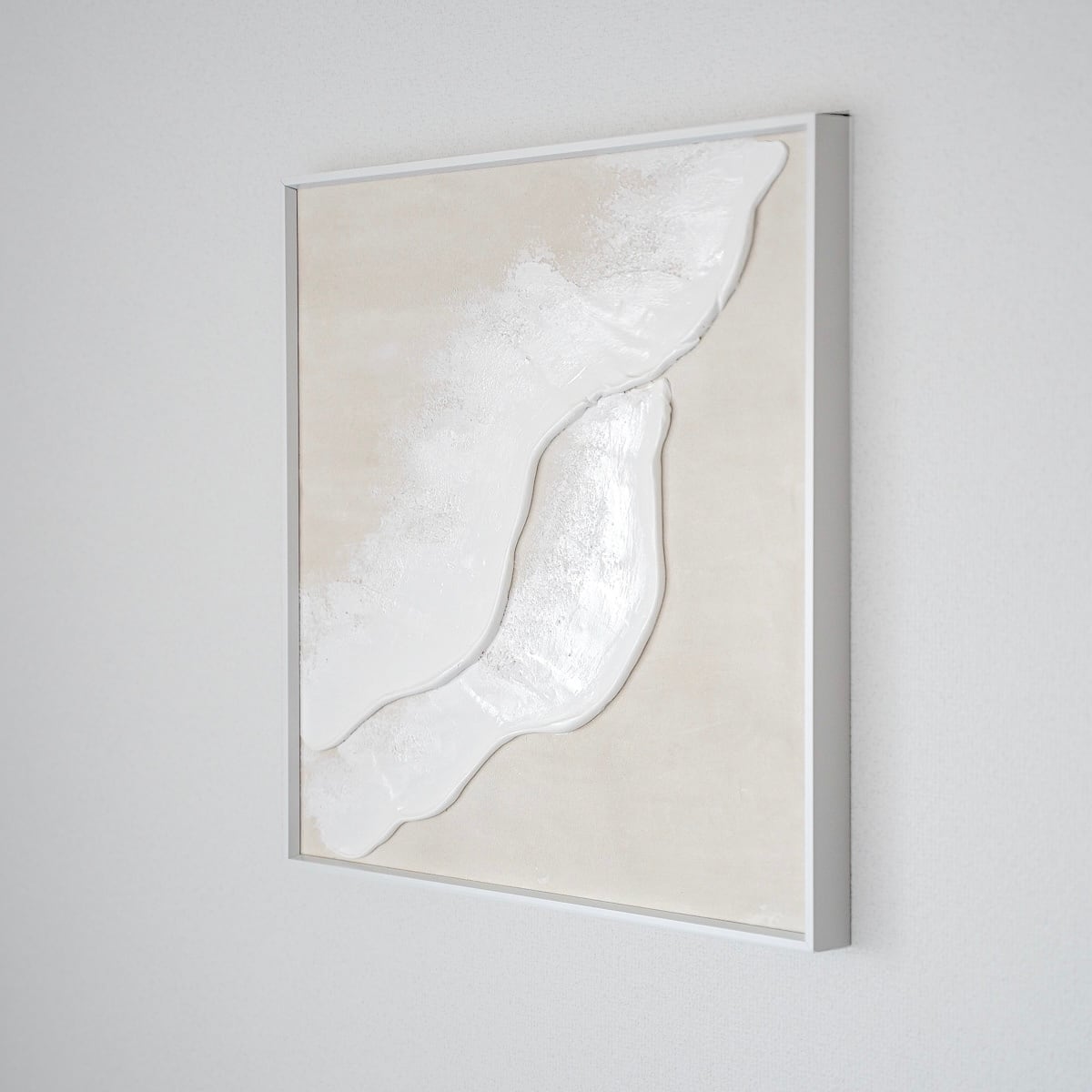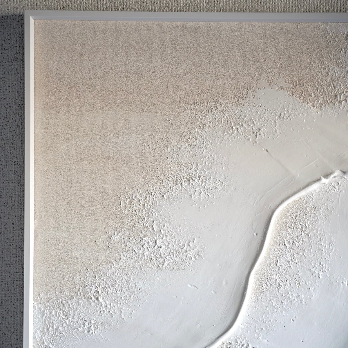海の絵 ベージュの絵 グレージュ ベージュインテリア 淡い民 波の絵 トープカラー taupe モダンアート 北欧インテリア キャンバスアート インテリア テクスチャーアート ホワイトテクスチャーアート アートパネル モダンアートミニマルアート 白い部屋 白いインテリア アートギャラリー 白い絵 額装 ミクストメディア