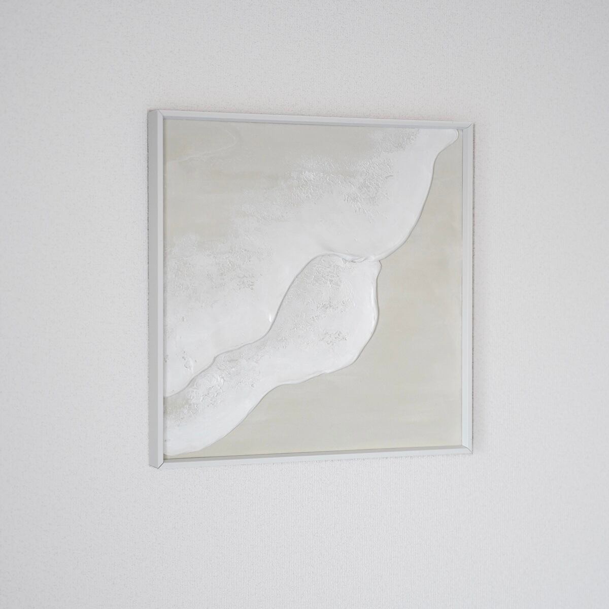 海の絵 ベージュの絵 グレージュ ベージュインテリア 淡い民 波の絵 トープカラー taupe モダンアート 北欧インテリア キャンバスアート インテリア テクスチャーアート ホワイトテクスチャーアート アートパネル モダンアートミニマルアート 白い部屋 白いインテリア アートギャラリー 白い絵 額装 ミクストメディア