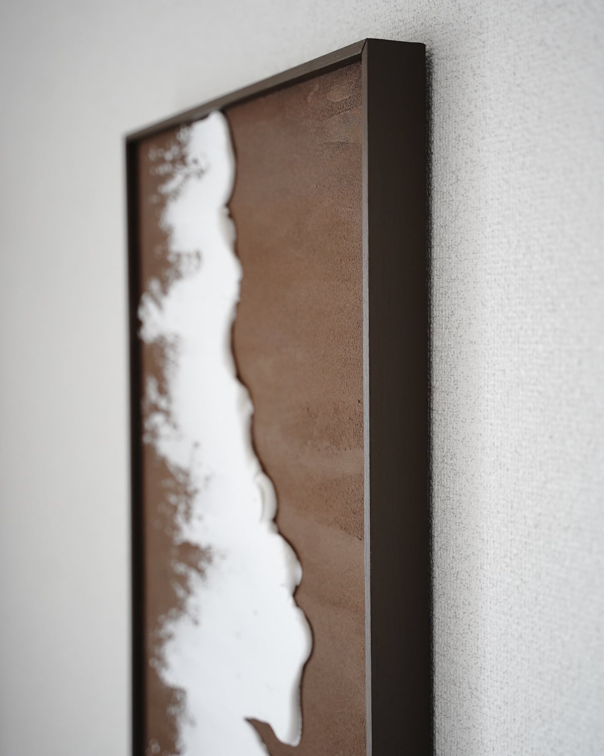 そこで目にした、穏やかながら滞ることのない波打ち際からインスピレーションを得ています。二度と同じ形で現れることのない無形の波を、確かにあった一瞬を、アートとして表現しました。