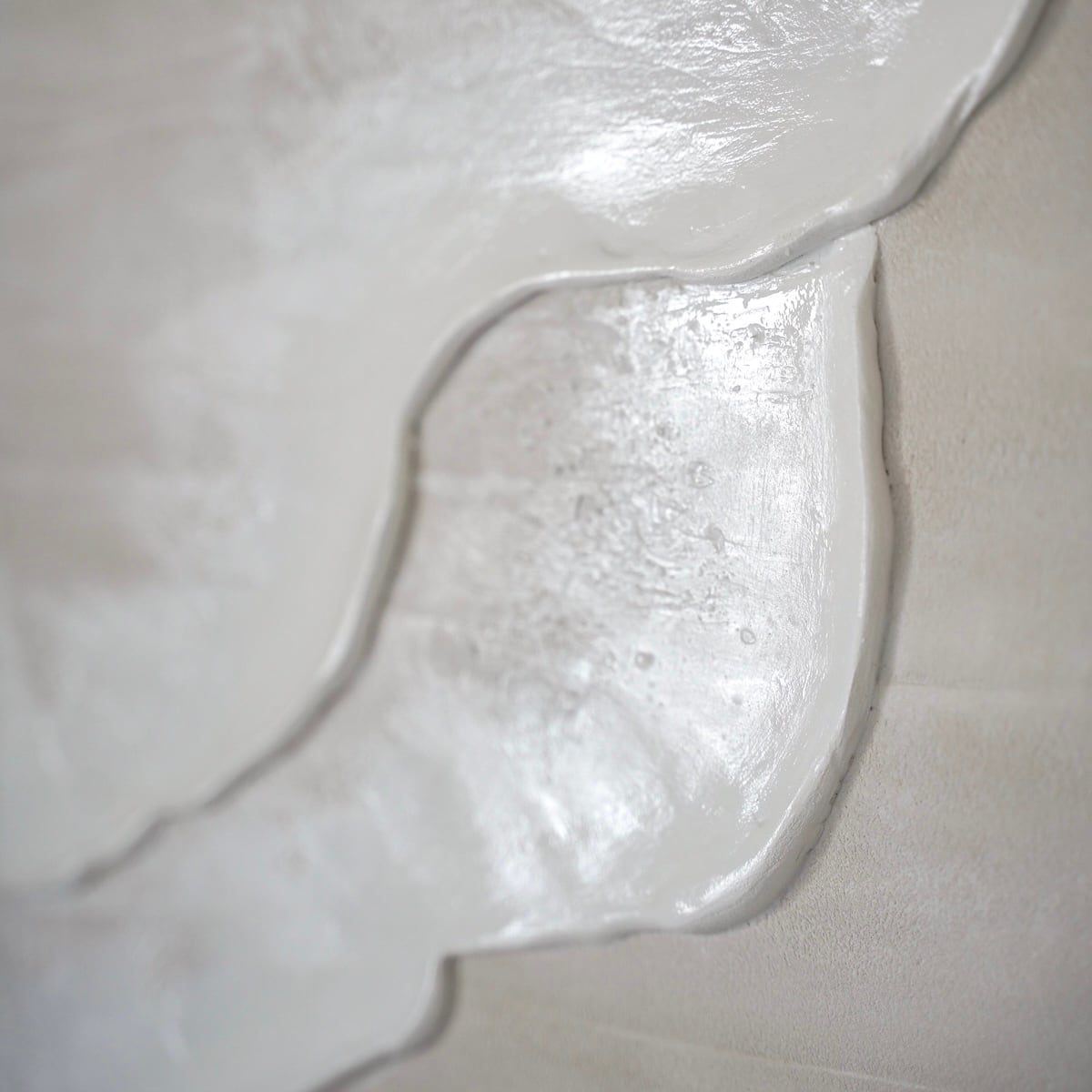 そこで目にした、穏やかながら滞ることのない波打ち際からインスピレーションを得ています。二度と同じ形で現れることのない無形の波を、確かにあった一瞬を、アートとして表現しました。