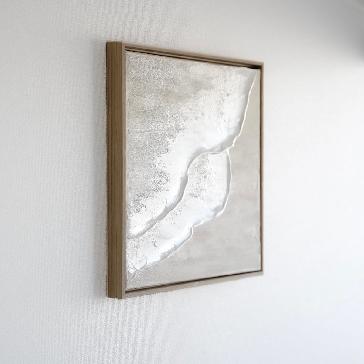 縦長の絵 海の絵 ベージュの絵 グレージュ ベージュインテリア 淡い民 波の絵 トープカラー taupe モダンアート 北欧インテリア キャンバスアート インテリア テクスチャーアート ホワイトテクスチャーアート アートパネル モダンアートミニマルアート 白い部屋 白いインテリア アートギャラリー 白い絵 額装 ミクストメディア