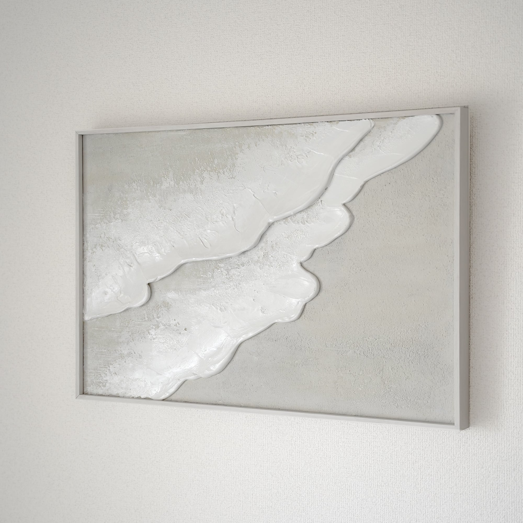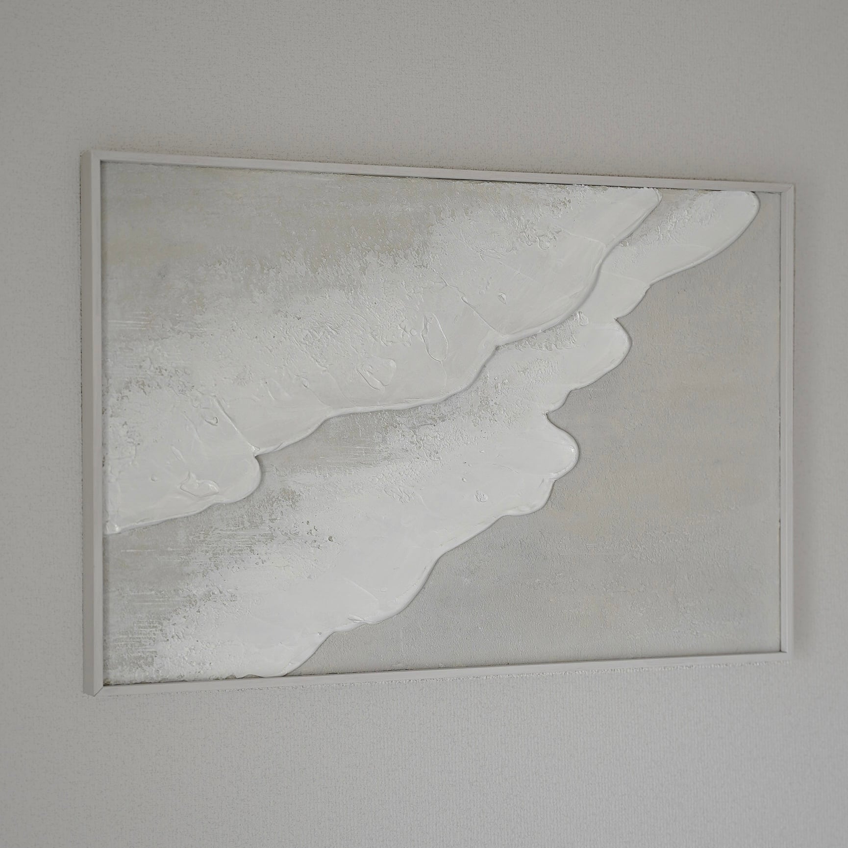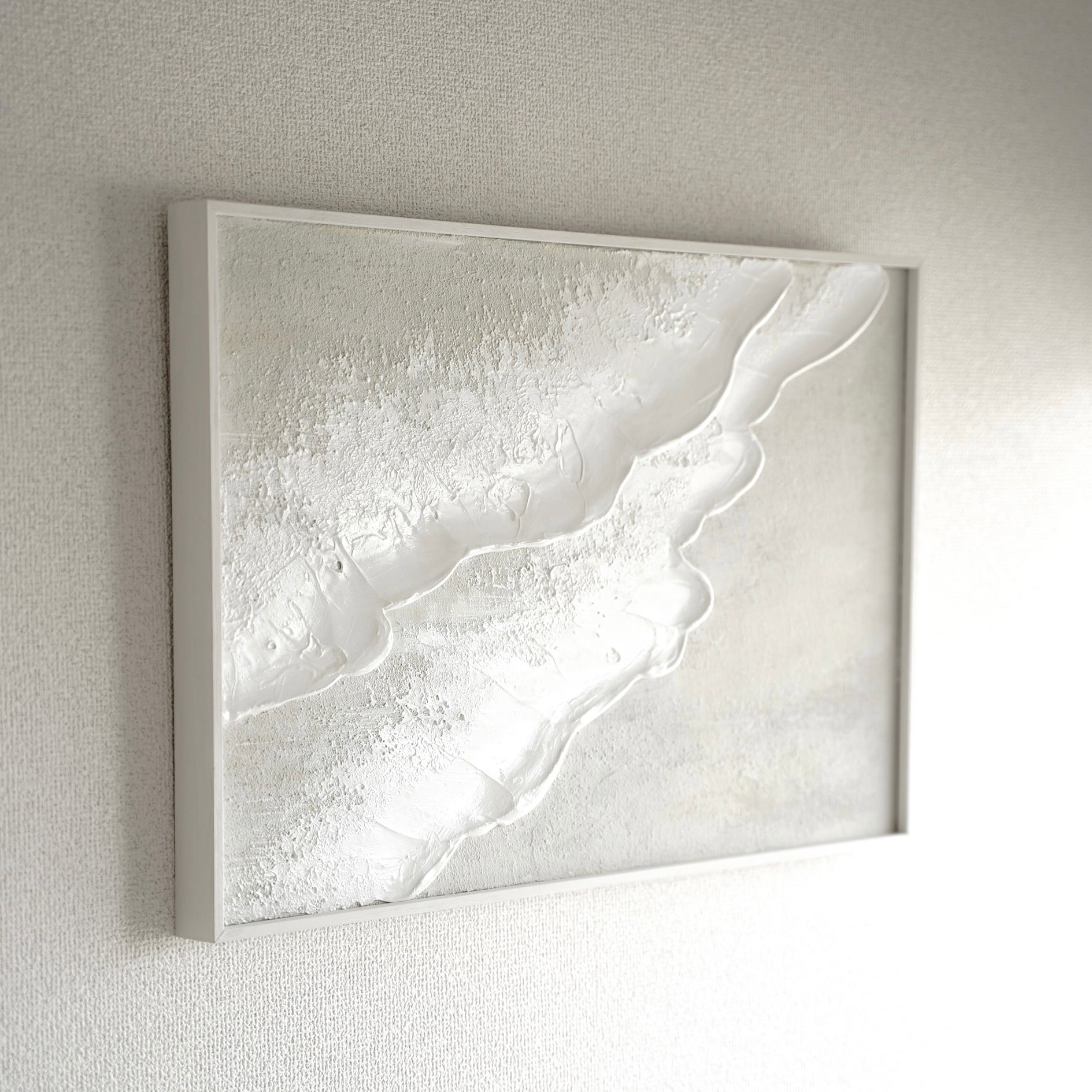 縦長の絵 海の絵 石膏アート 波の絵 モダンアート 北欧インテリア キャンバスアート インテリア テクスチャーアート ホワイトテクスチャーアート アートパネル モダンアートミニマルアート 白い部屋 白いインテリア アートギャラリー 白い絵 額装 ミクストメディア