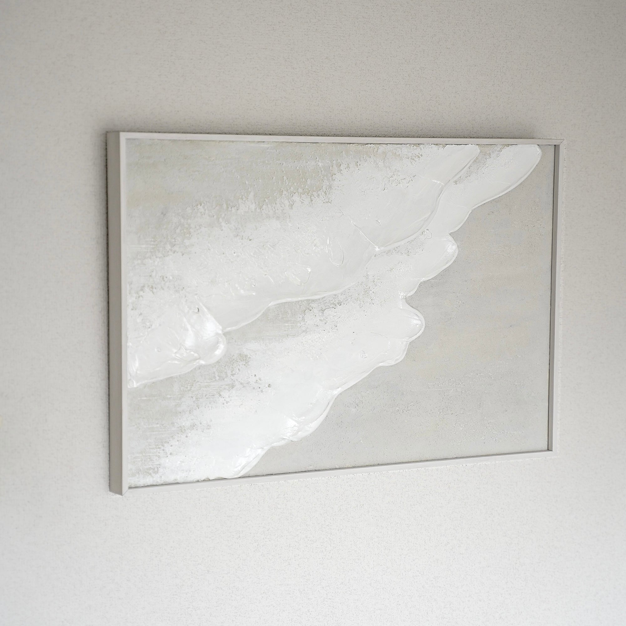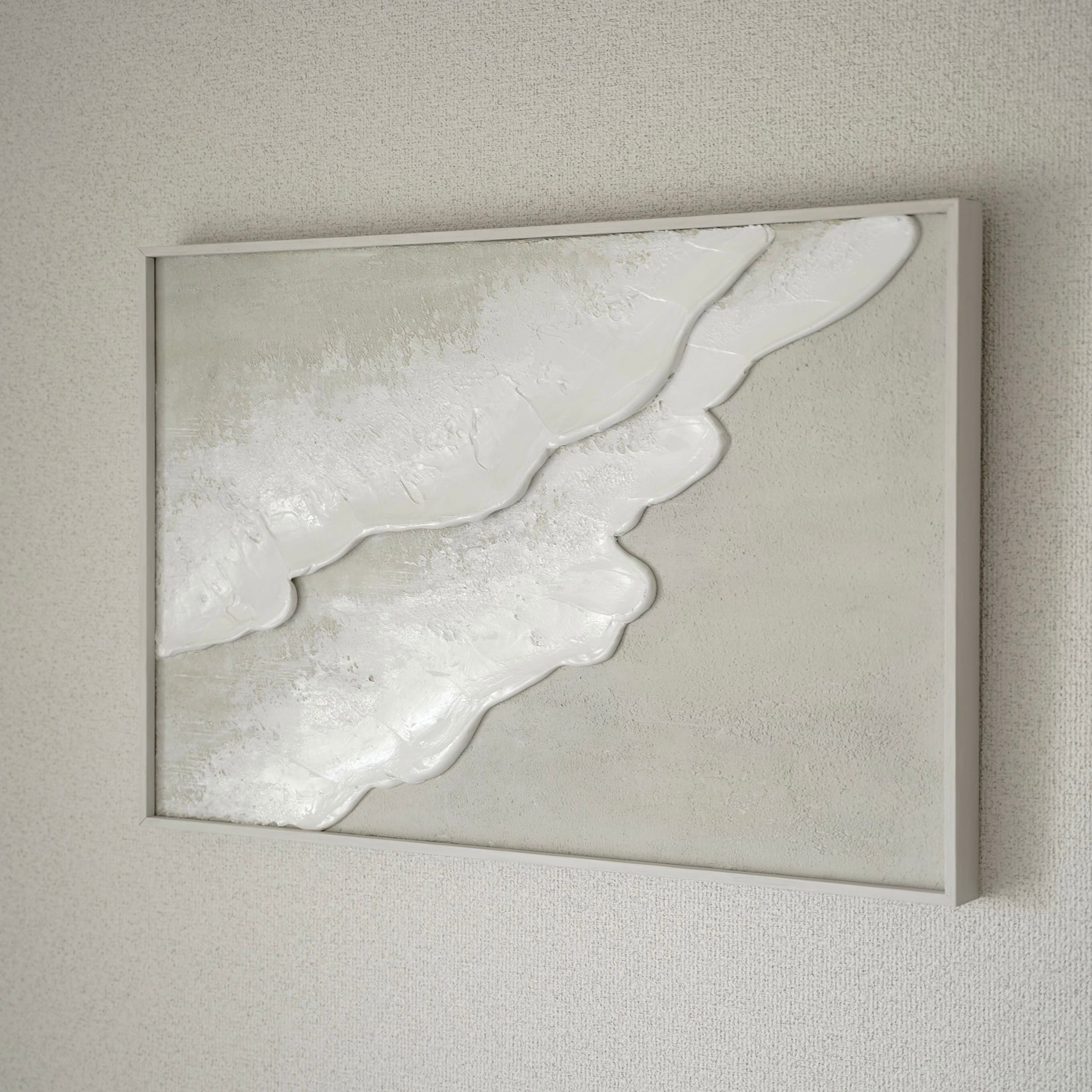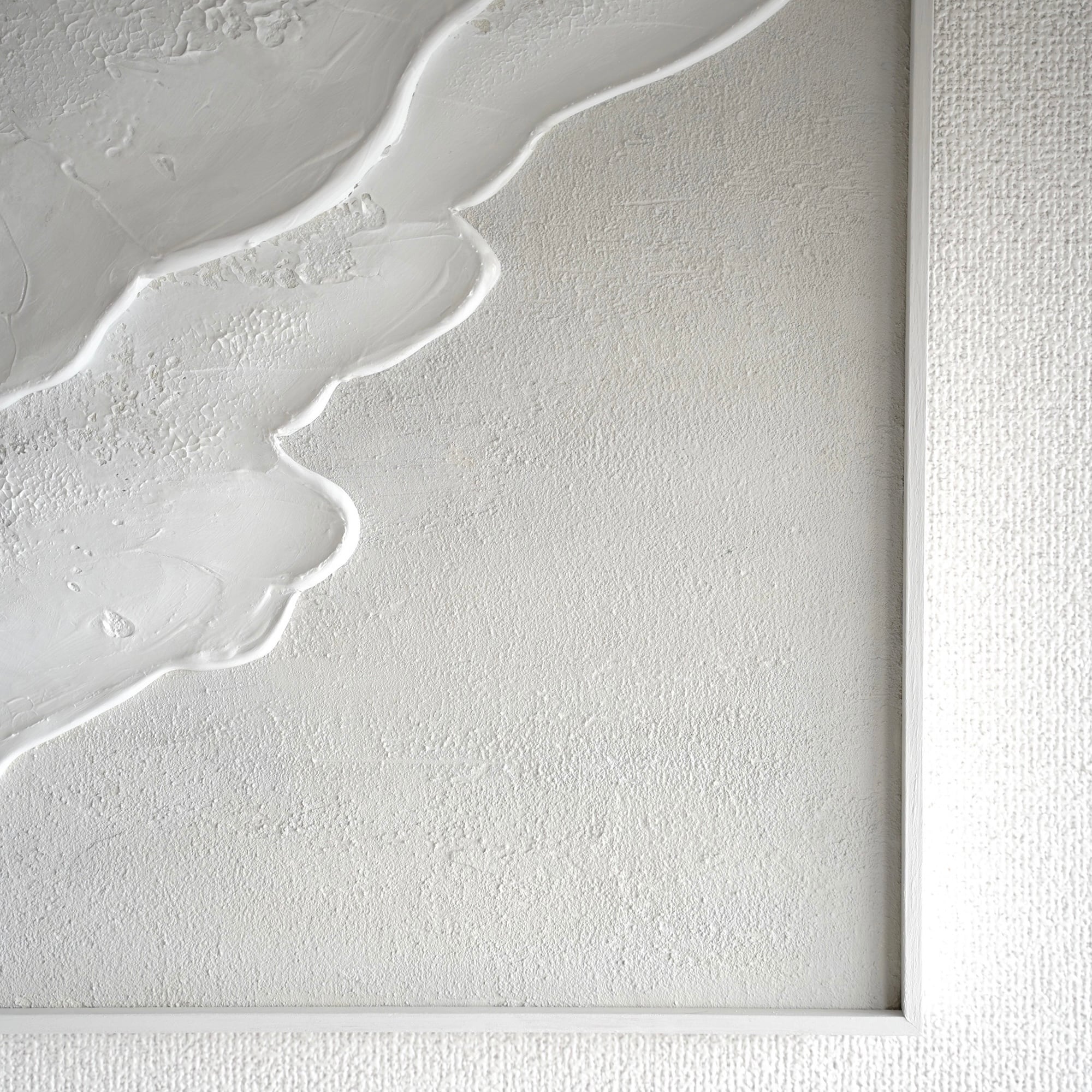 縦長の絵 海の絵 石膏アート 波の絵 モダンアート 北欧インテリア キャンバスアート インテリア テクスチャーアート ホワイトテクスチャーアート アートパネル モダンアートミニマルアート 白い部屋 白いインテリア アートギャラリー 白い絵 額装 ミクストメディア