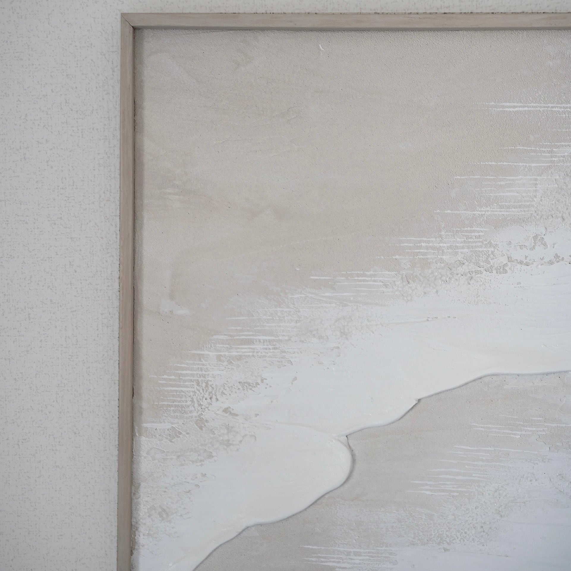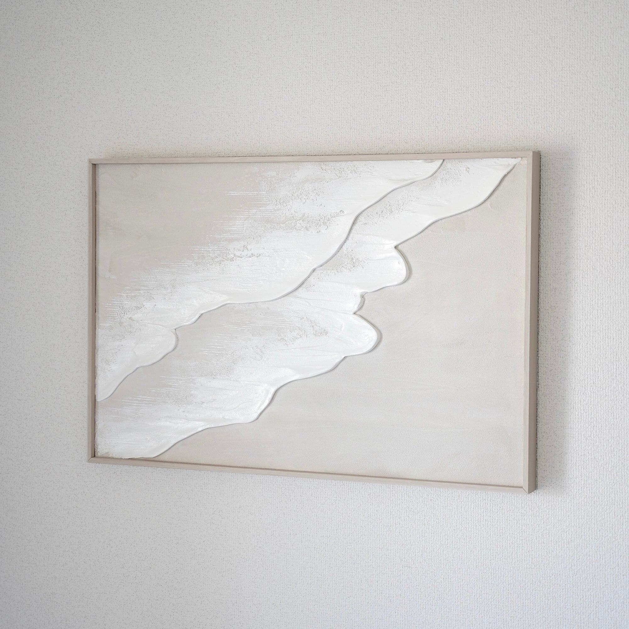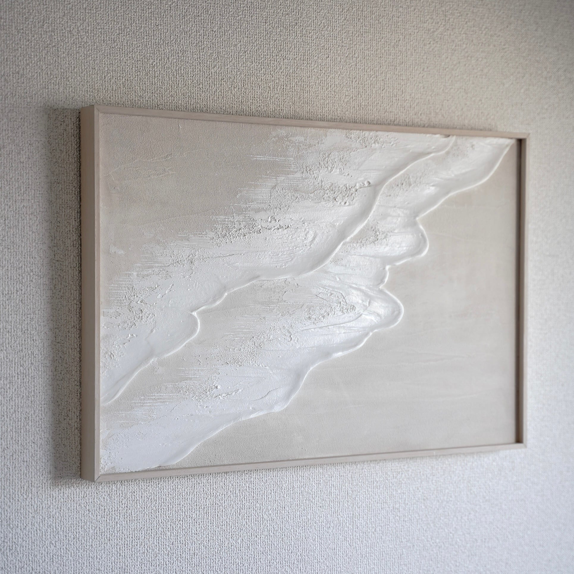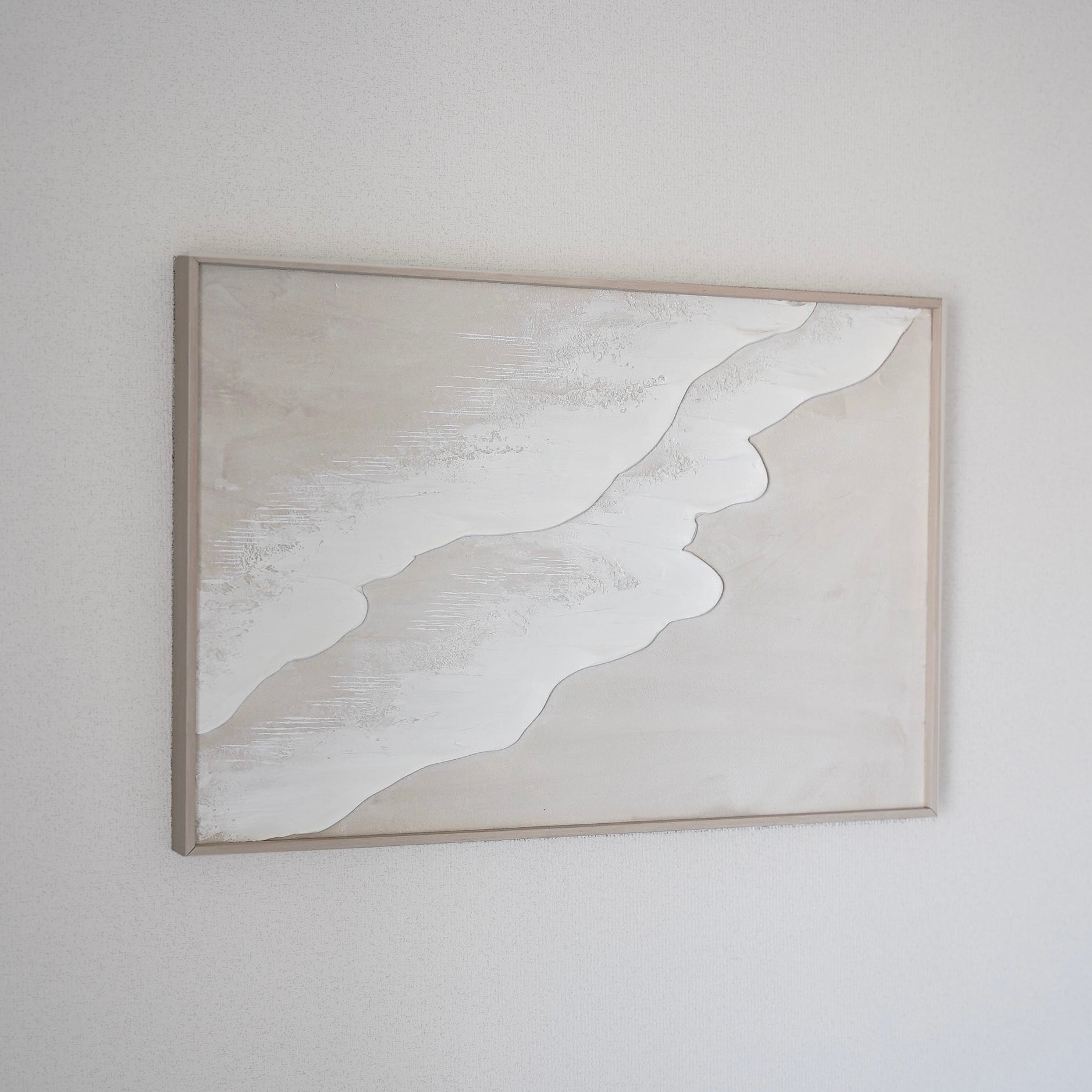 抽象画 横長の絵 海の絵 ベージュの絵 グレージュ ベージュインテリア 淡い民 波の絵 モダンアート 北欧インテリア キャンバスアート インテリア テクスチャーアート ホワイトテクスチャーアート アートパネル モダンアートミニマルアート 白い部屋 白いインテリア アートギャラリー 白い絵 額装 ミクストメディア