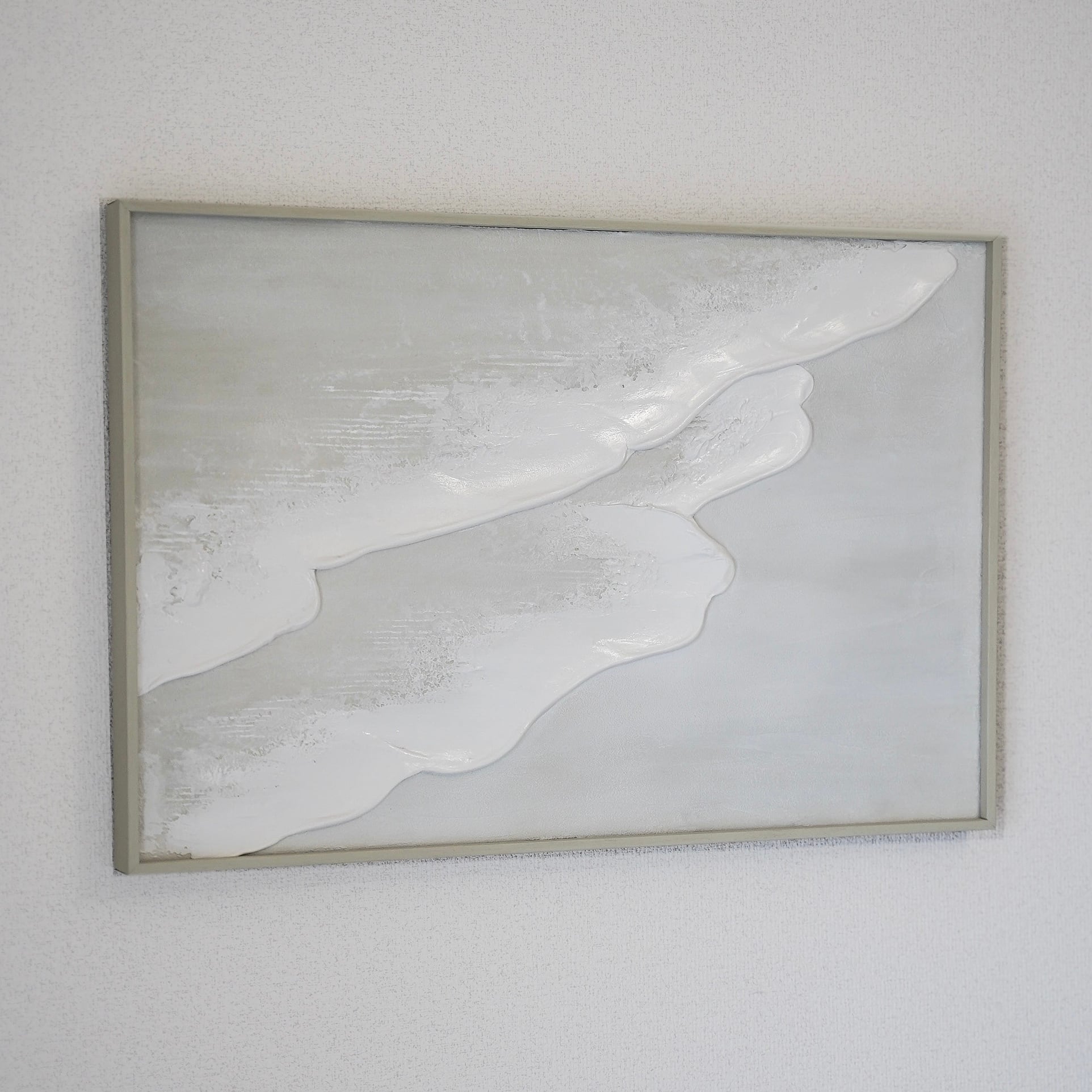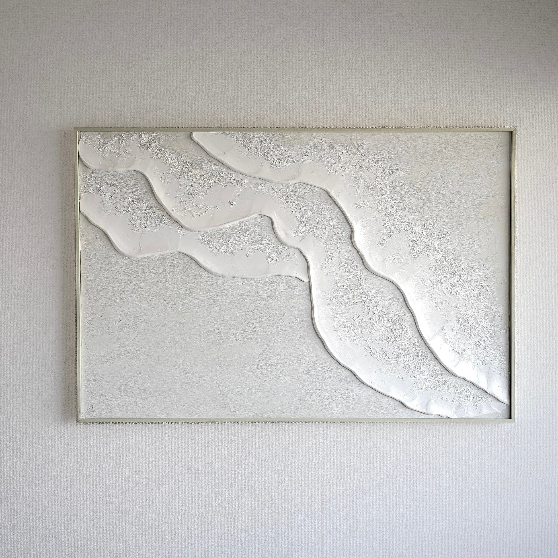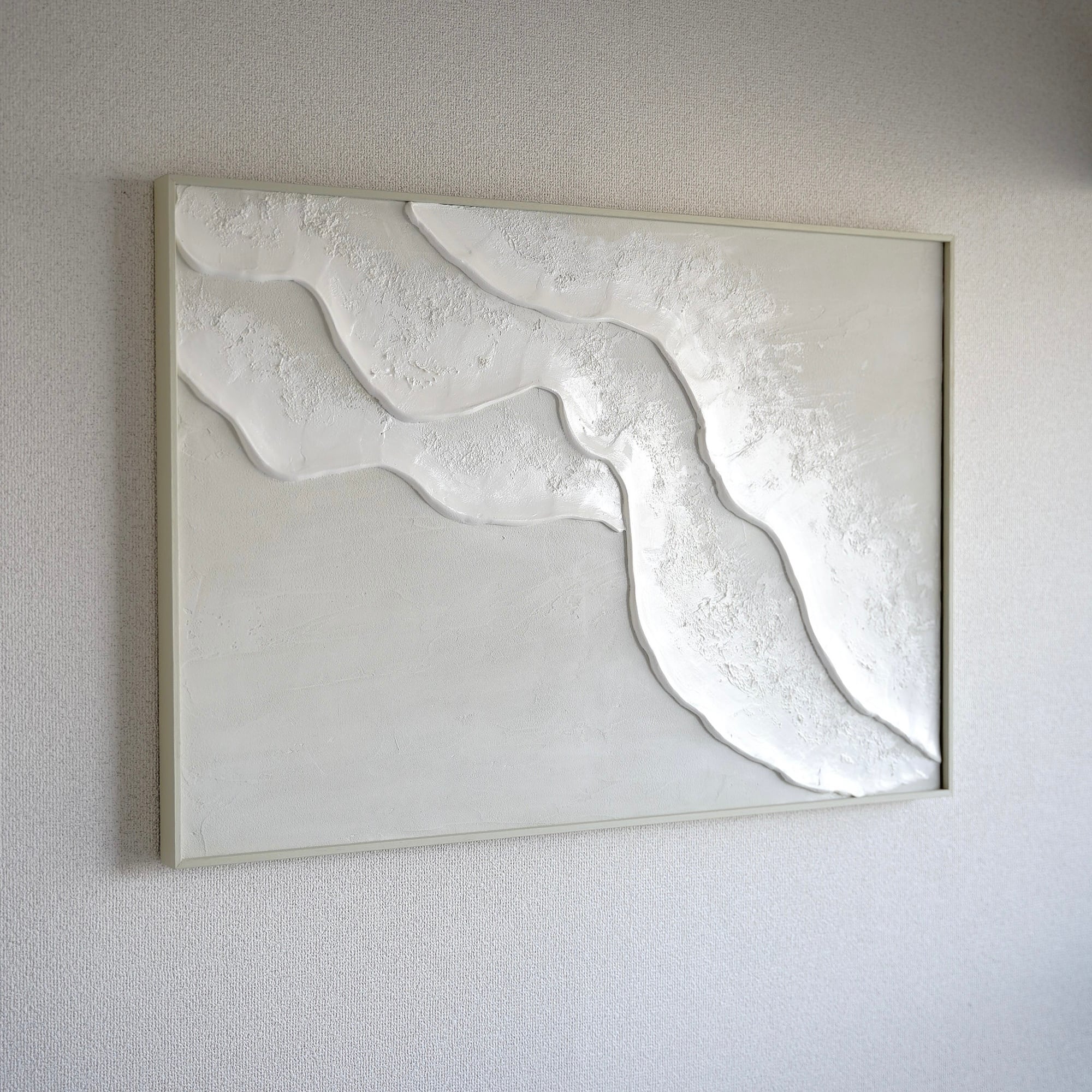 縦長の絵 海の絵 石膏アート 波の絵 モダンアート 北欧インテリア キャンバスアート インテリア テクスチャーアート ホワイトテクスチャーアート アートパネル モダンアートミニマルアート 白い部屋 白いインテリア アートギャラリー 白い絵 額装 ミクストメディア
