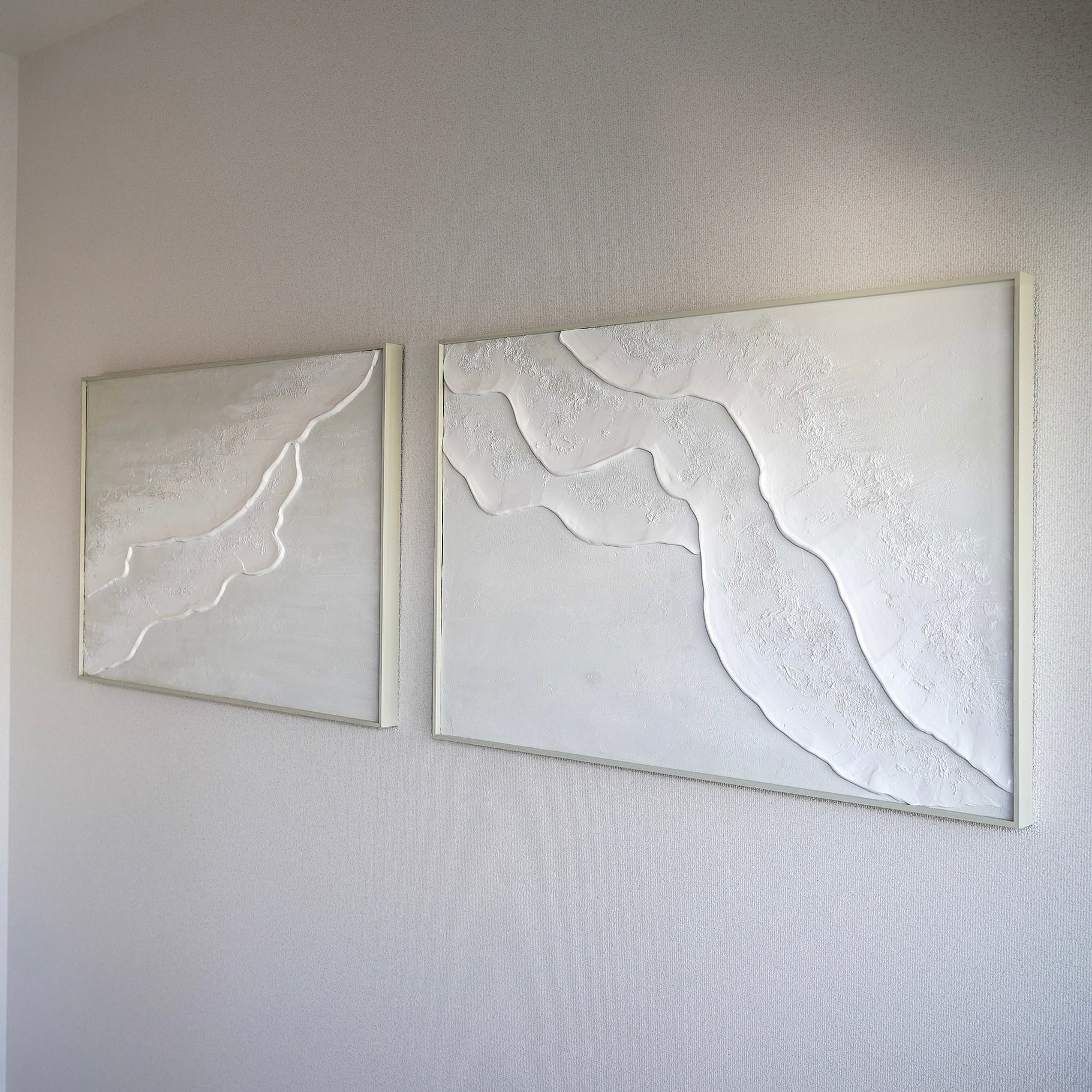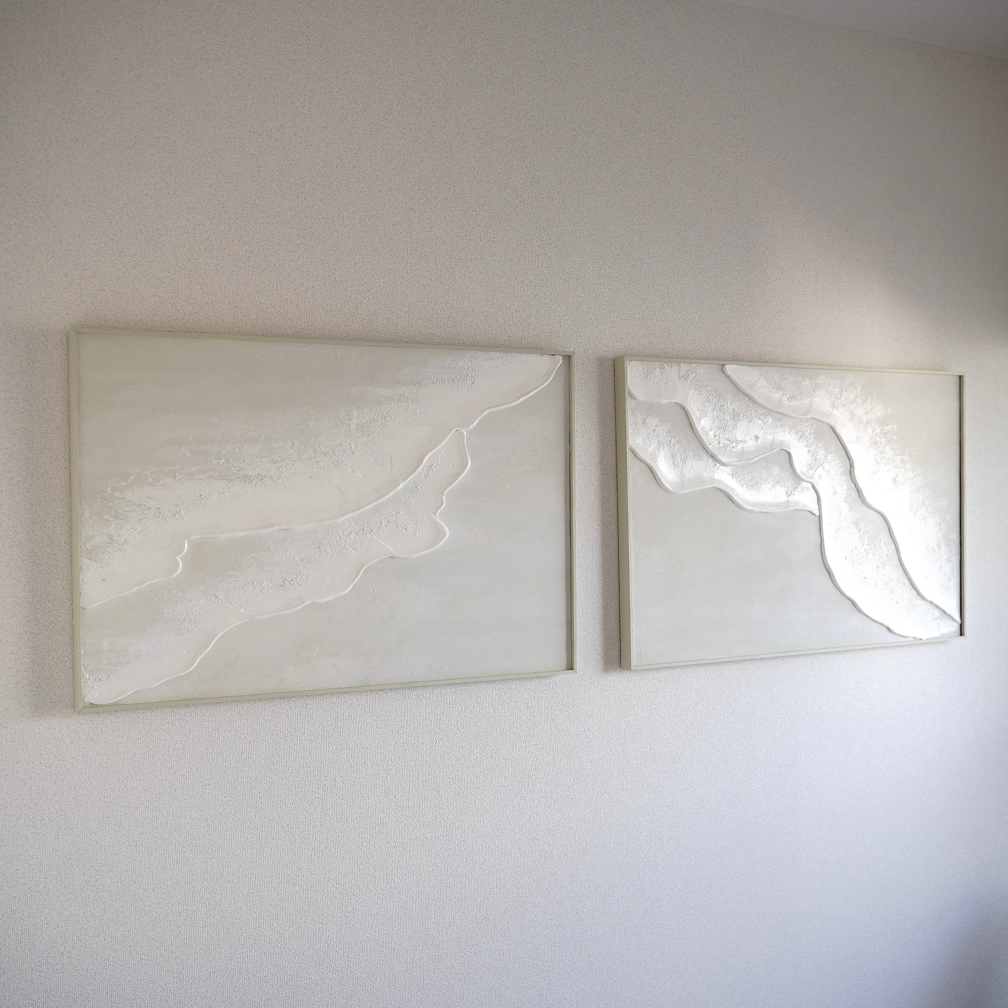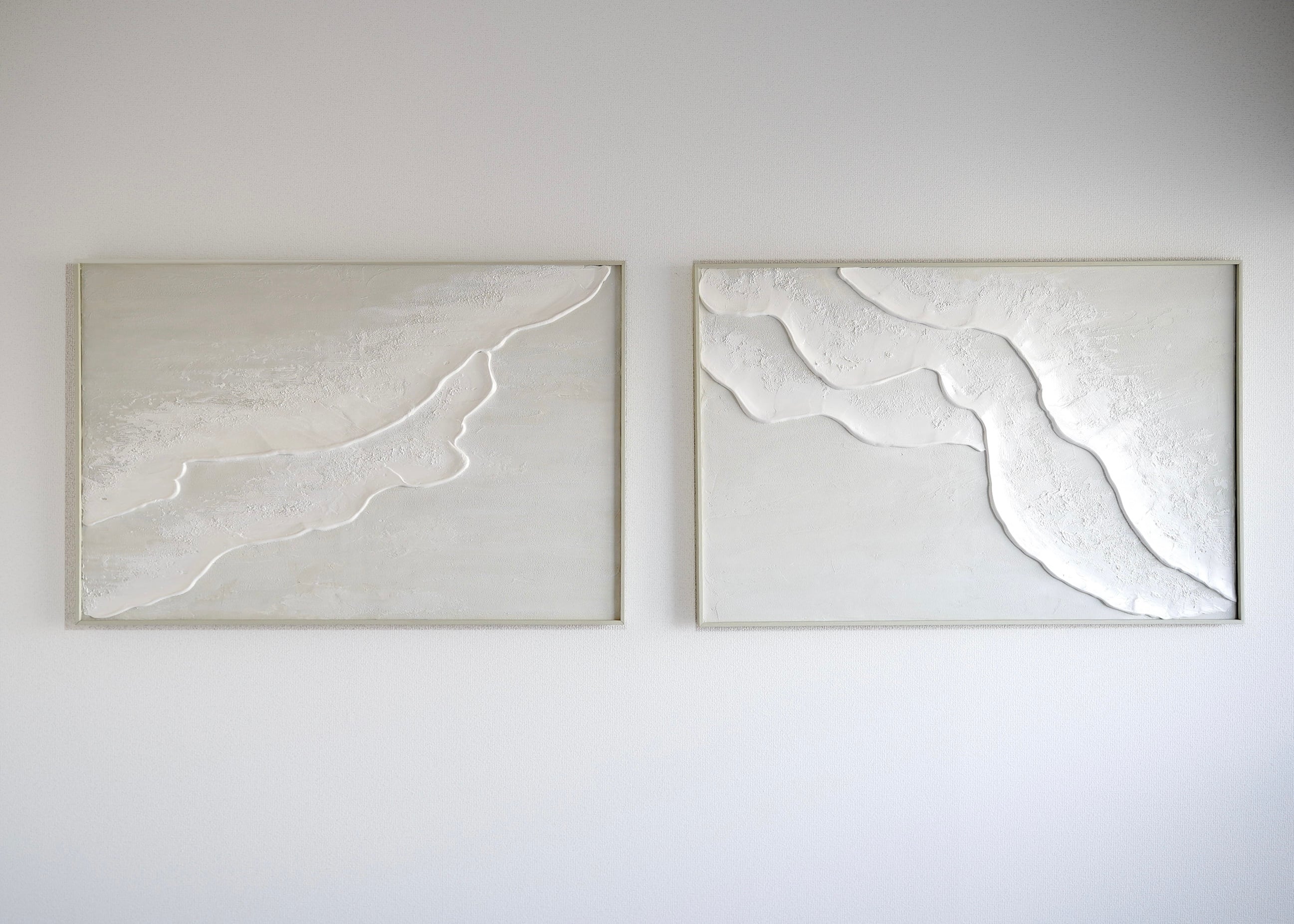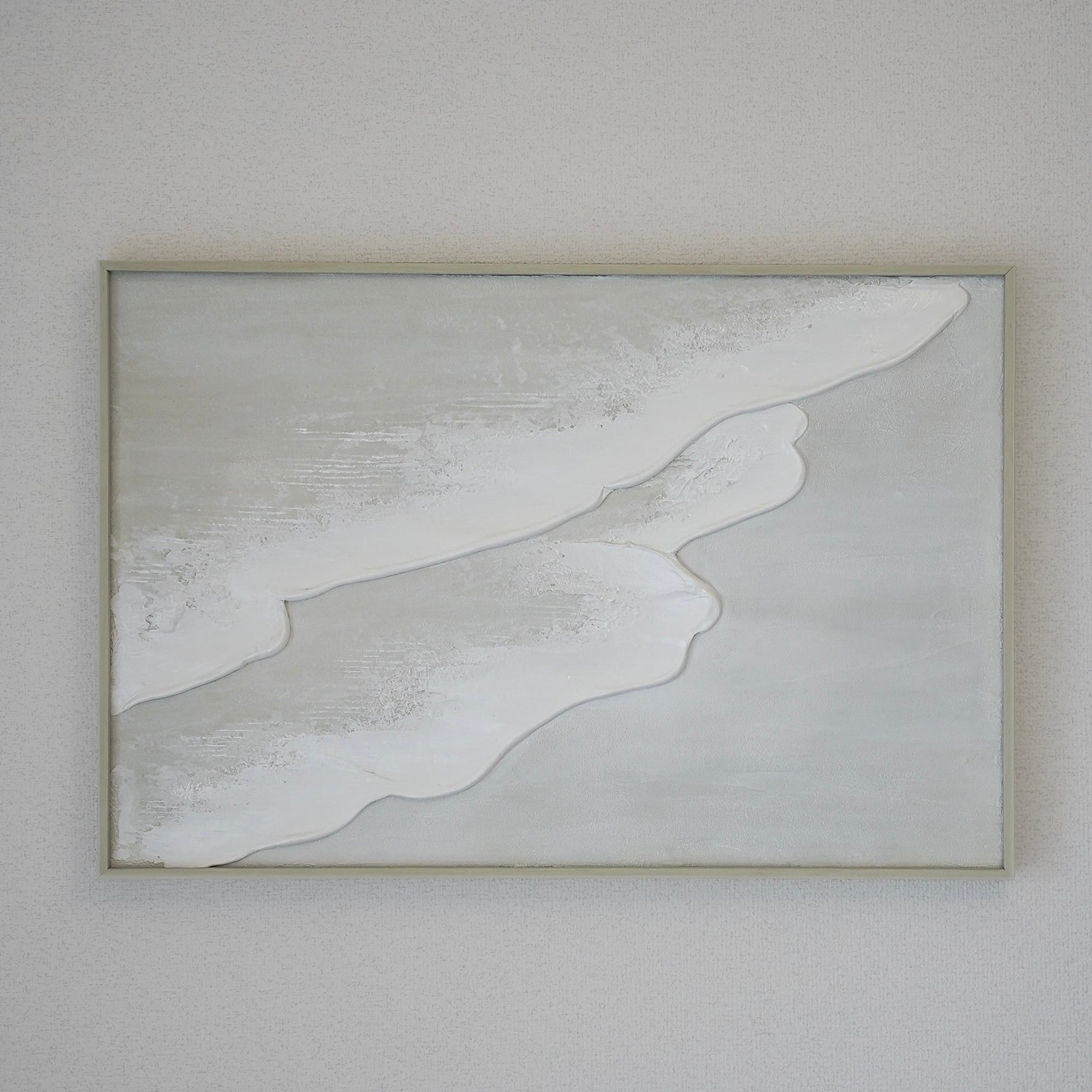 縦長の絵 海の絵 石膏アート 波の絵 モダンアート 北欧インテリア キャンバスアート インテリア テクスチャーアート ホワイトテクスチャーアート アートパネル モダンアートミニマルアート 白い部屋 白いインテリア アートギャラリー 白い絵 額装 ミクストメディア