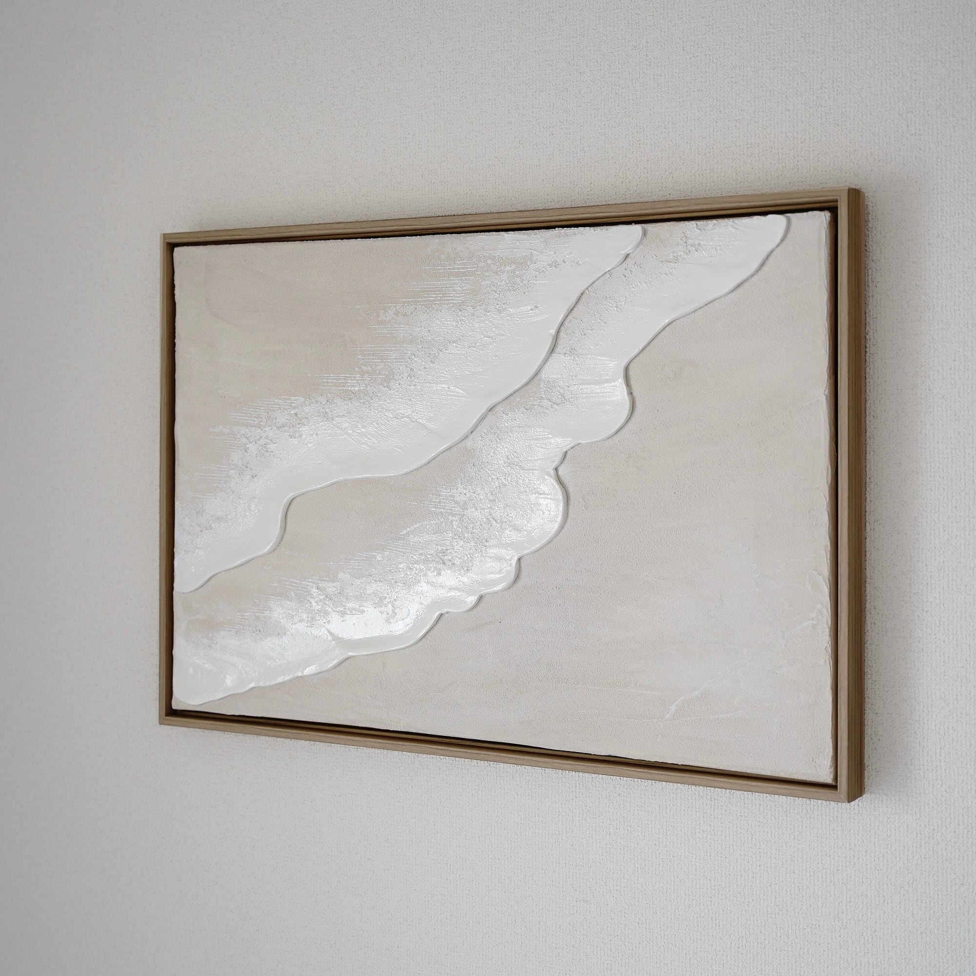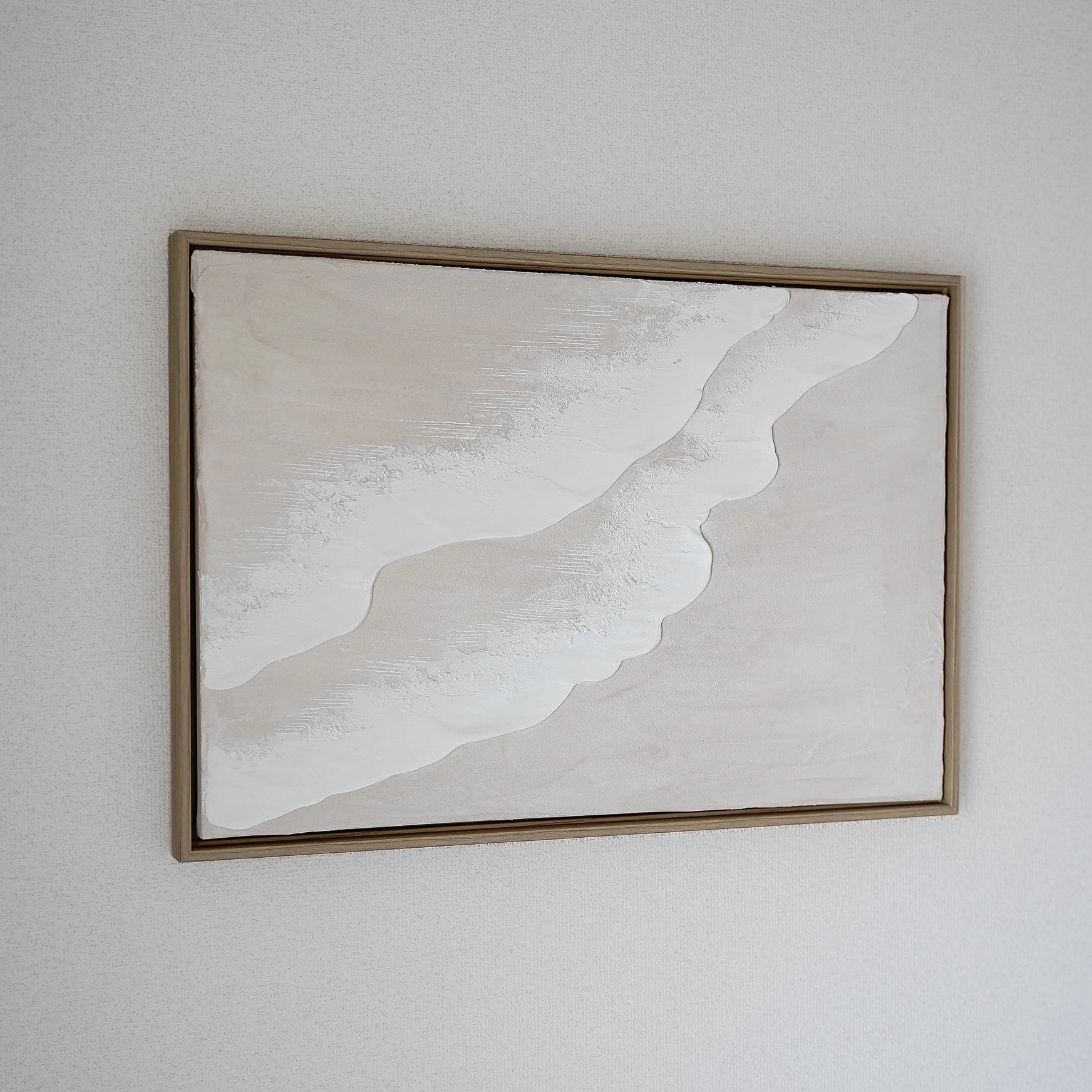 抽象画 横長の絵 海の絵 ベージュの絵 グレージュ ベージュインテリア 淡い民 波の絵 モダンアート 北欧インテリア キャンバスアート インテリア テクスチャーアート ホワイトテクスチャーアート アートパネル モダンアートミニマルアート 白い部屋 白いインテリア アートギャラリー 白い絵 額装 ミクストメディア