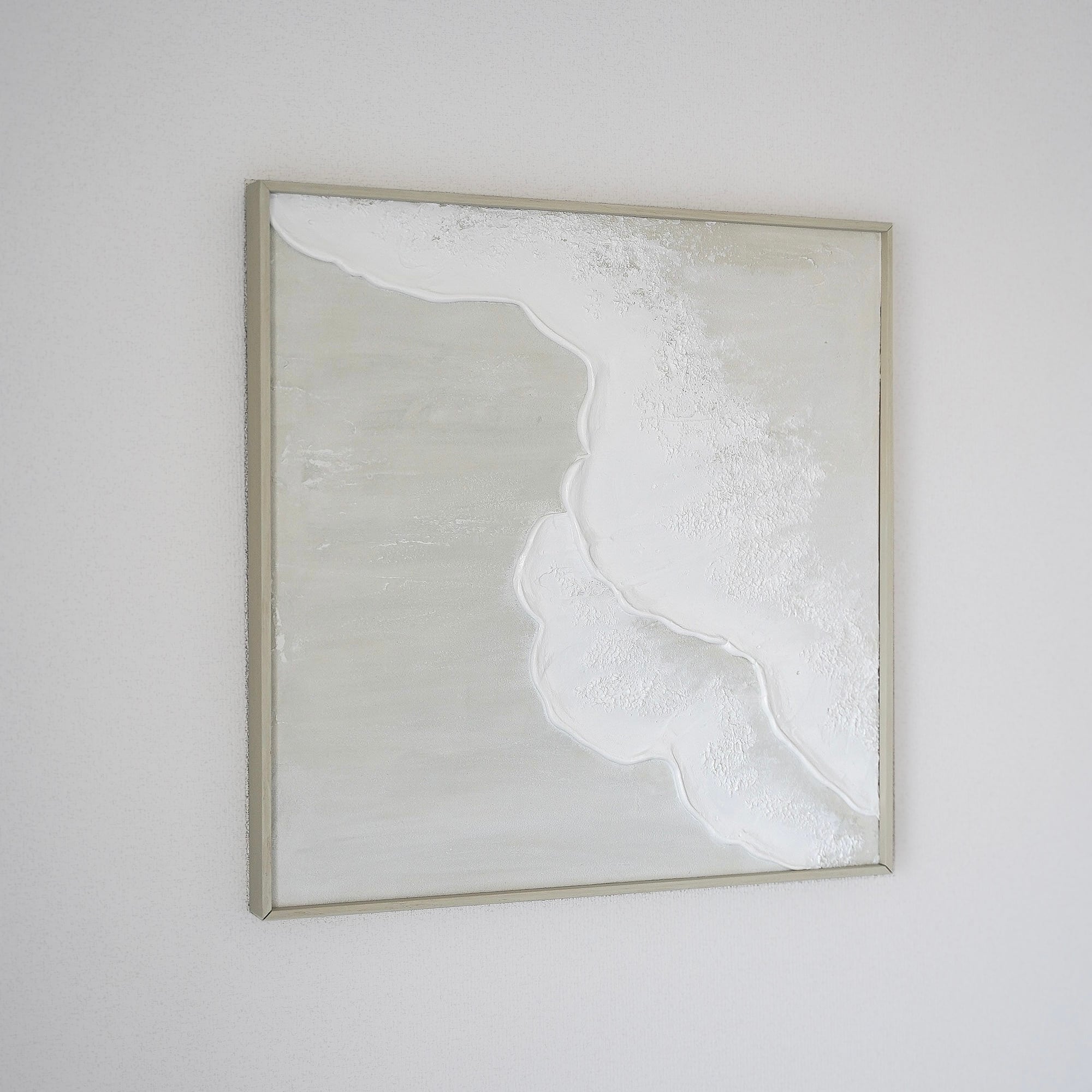 縦長の絵 海の絵 ベージュの絵 グレージュ ベージュインテリア 淡い民 波の絵 モダンアート 北欧インテリア キャンバスアート インテリア テクスチャーアート ホワイトテクスチャーアート アートパネル モダンアートミニマルアート 白い部屋 白いインテリア アートギャラリー 白い絵 額装 ミクストメディア sea